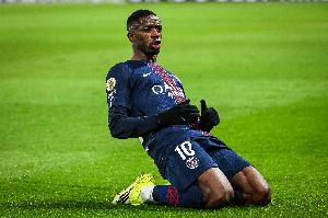数据统计显示,登贝莱的首粒进球也是他欧冠生涯首次在禁区外左脚破门。