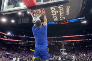 GIF-库里赛前轻松空接背扣